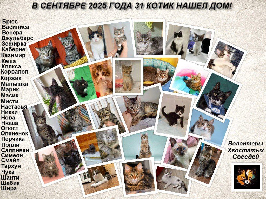 31 хвост, 31 сердечко, 31 душа нашли свой дом в сентябре с помощью команды пиара и волонтеров "Хвостатых соседей".