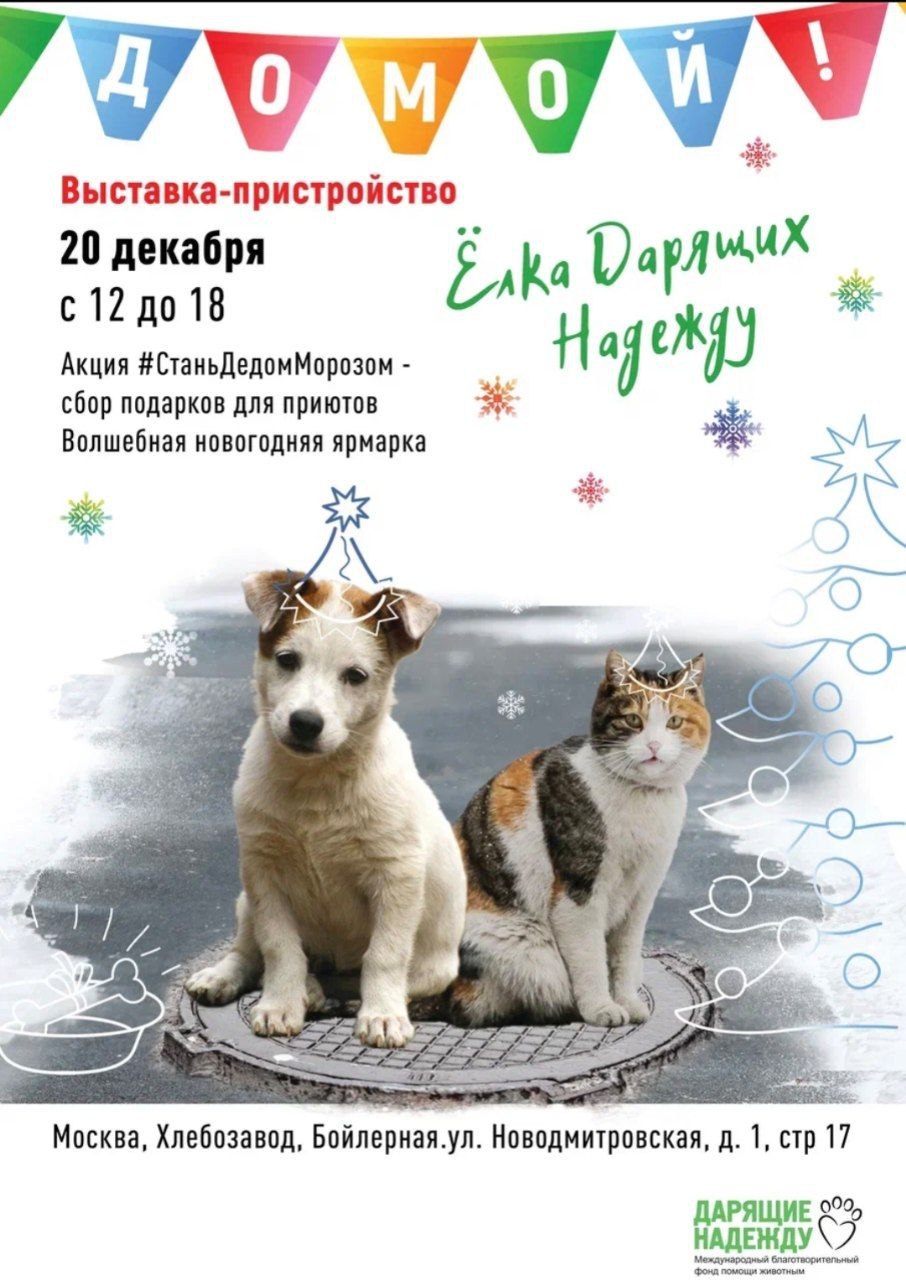 Выставка-пристройство от Фонда "Дарящие надежду" пройдёт 20 декабря на Хлебозаводе.