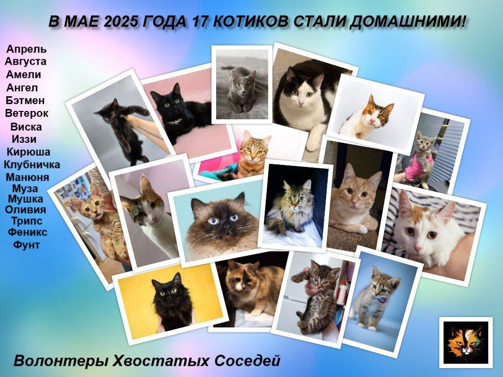 В этом месяце силой команды пиара и при участии волонтеров, кураторов "Хвостатых соседей" 17 хвостиков нашли свой самый лучший дом и свою семью.